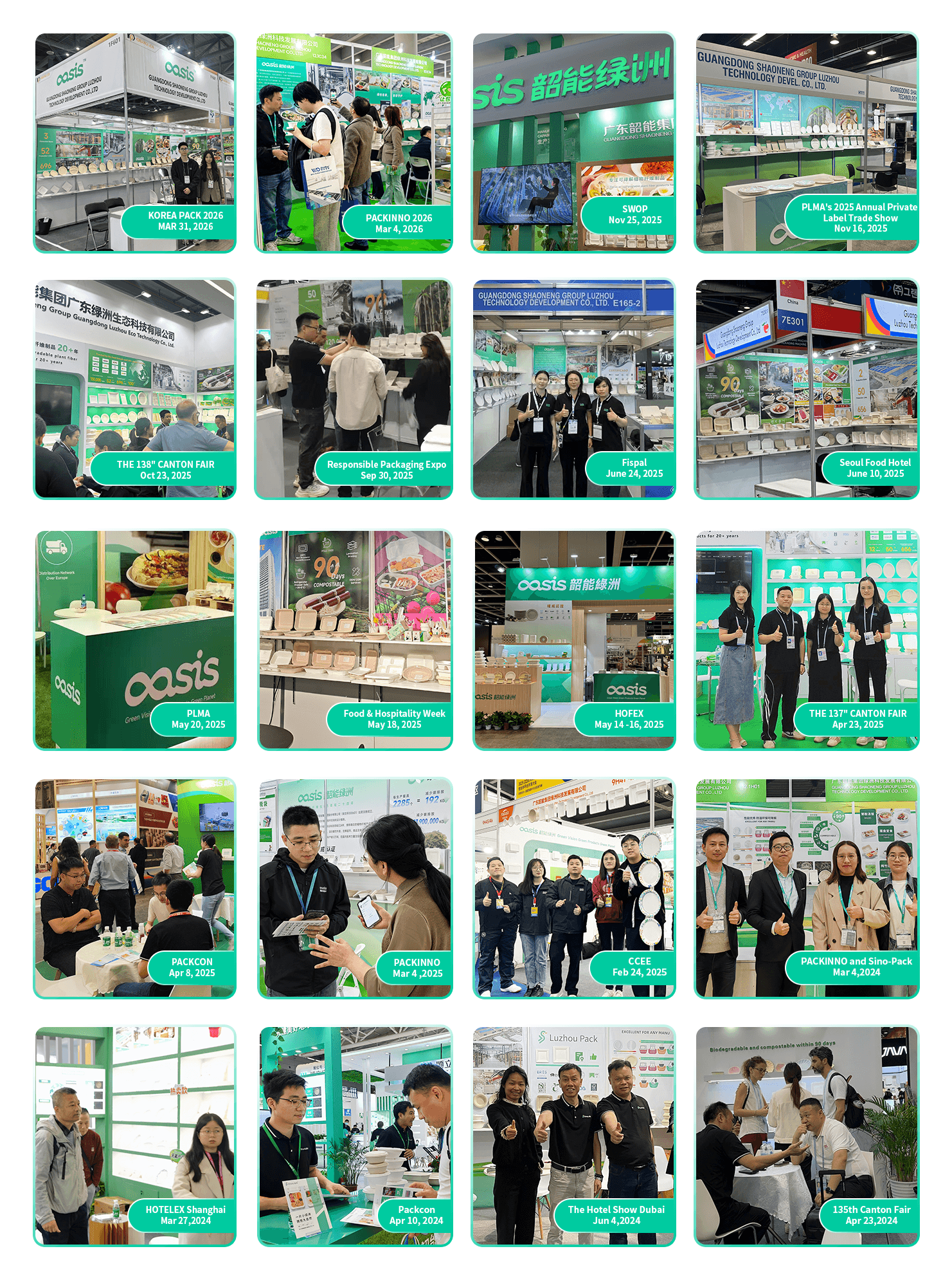 Luzhou Pack (aka OASIS), founded by Guangdong Shaoneng Group Co., Ltd. in 2001, has over 20 years of experience in biodegradable plant fiber products and technology consultation. Our innovative R&D team, extensive production capabilities, and all-rounded certifications position us as a leading manufacturer in China and beyond. All our products meet stringent biodegradability and compostability standards. At the same time, they have also passed rigorous food contact safety testing. Partner with us confidently to grow your business!